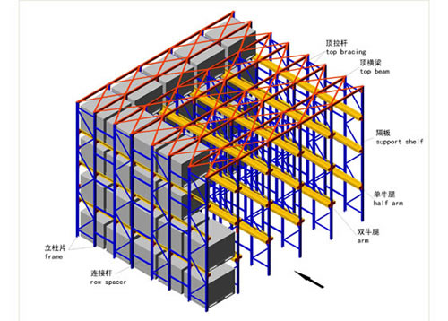 1、駛?cè)胧截浖芤卜Q為通廊式貨架或者貫通式貨架。